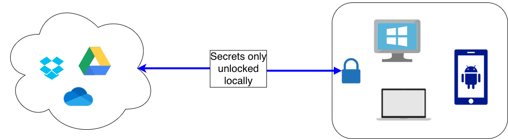 Importantly, the KeePass encrypted file is always encrypted BEFORE it is saved, so the cloud provider NEVER sees the unencrypted password list.